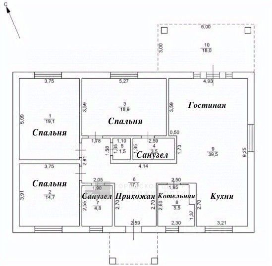 Планировка 1-го,этажа:коридор с тёплым полом,котельная-5кв,кухня гостиная-23кв,комната-14кв,кладовая комната, санузел с душевой-4кв.