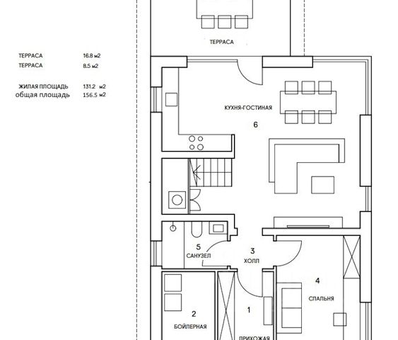 Дом 150м2. Просторная кухня гостиная со вторым светом, 3 спальни, одна из спален огромная с собственным санузлом и гардеробной. Всего в доме 2 гардеробные, 2 санузла, есть отдельная котельная-постирочная. В гостевом санузле установлена сауна на 2-3 человека.