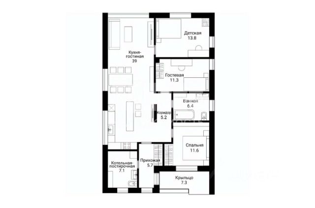 Просторный одноэтажный дом площадью 130 м² — гармоничное сочетание уюта и функциональности. В планировке: кухня-гостиная 22 м² с выходом на террасу, три спальни (в том числе мастер-спальня с гардеробной и санузлом), две ванные комнаты, бойлерная, прихожая и просторный холл. Дом спроектирован так, чтобы каждая комната имела естественное освещение и логичное зонирование. Расположен в коттеджном поселке "Акиньшино Клаб" — новом клубном поселке комфорт-класса в Новой Москве, всего в 17 км от МКАД. Закрытая территория, охрана, видеонаблюдение, клубный дом с кофейней и лаунж-зоной, детские и спортивные площадки, гриль-зона и прямой выход в лес с подсвеченной экотропой. Акиньшино Клаб" — это комфорт-класс в новом смысле: тёплые каменные дома, ухоженная территория, продуманная инфраструктура и атмосфера уюта. Здесь редкое сочетание: московская прописка, развитая инфраструктура мегаполиса и при этом — спокойствие, чистый воздух и зелёные просторы. В центре поселка — клубный дом с каминным залом, библиотекой, кофейней, детским клубом и лаунж-зоной на крыше. Для активного отдыха предусмотрены спортивная площадка, футбольное поле, костровая и гриль-зоны, детская игровая площадка, а также прямой выход в лес с освещённой экотропой для прогулок. Поселок находится на возвышенности и окружён лесным массивом площадью более 1200 гектаров — это охраняемая природная территория Новой Москвы. Здесь можно гулять, кататься на велосипеде, устраивать пикники и встречать рассветы прямо у дома. Звоните и записывайтесь на просмотр! Наш эксперт отдела продаж встретит вас в поселке и покажет все варианты домов в наличии! Номер объекта: #1/537818/22374