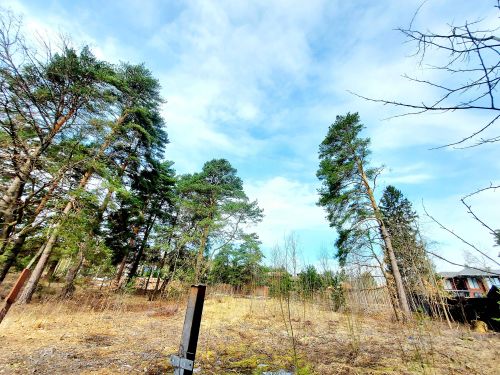 10 соток, правильной формы, дренажированный, огорожен забором, установлены автоматические ворота, высажены деревья, уложен рулонный газон, разбиты клумбы с цветами, паркинг на четыре машиноместа, двор и отмостка вокруг дома покрыты мягким резиновым покрытием, дорожки выложены плиткой.