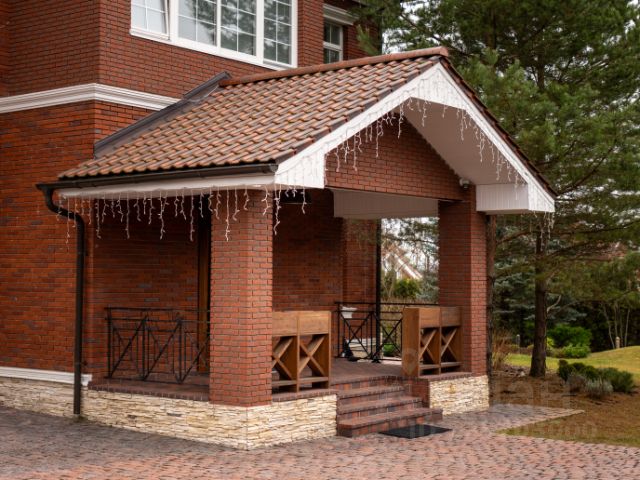 Медная фальцевая кровля, изготовленная по спецзаказу, и фасад, украшенный лепниной, мраморными пилястрами и гранитными бордюрами - элементы, которые подчеркивают статус и уникальность дома. Особое внимание уделено материалам: стены из глиняного кирпича толщиной 1 метр, перекрытия из ж/б монолита с арматурой 32, а в интерьере и экстерьере использованы элементы, выполненные по индивидуальному заказу