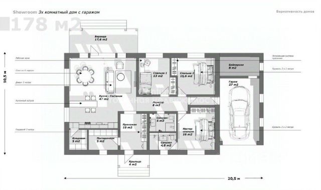 Арт. 112495456 Новый, качественный, современный, одноэтажный дом в СЕМЕЙНУЮ ИПОТЕКУ! Дом с чистовой отделкой "Вайт бокс" (White Box), проведена качественная подготовка стен, штукатурка наноситься под лампой Лосева. По желанию покупателя возможно закончить ремонт "ПОД КЛЮЧ" ! Дом расположен в жилом строго-охраняемом коттеджном поселке со всеми центральными коммуникациями, в живописном экологически чистом районе в окружении Реликтового лесного массива. Конструктив Материал стен - газоблок 400мм D400 , фасад - облицовкой кирпичом Brayer, фундамент - монолитная УШП плита 300мм с двойным армированием и наивысшем качеством подготовки, утепление Эппс 50мм, вокруг дома выполнены бетонные отмостки с армированием и утеплением 50мм Эппс. Кровля- двухслойная мягкая черепица Технониколь. Утепление перекрытия крыши 250мм утеплителем Knauf. Планировка Дом начинается с комфортной прихожей, с нишами для встроенных шкафов. Большой кухней/гостиной, с высотой потолков более пяти метров, все спальни оборудованы панорамными окнами в пол, которые можно использовать как индивидуальный выход из спален в зоны отдыха и на задний двор, для вашего комфорта к дому пристроен отапливаемый гараж на один автомобиль в который можно попасть не выходя из дома. Просторный холл, прихожая, кухня гостиная с выходом на террасу, постирочная, санузел, мастер-спальня со своим санузлом, две спальни, гардеробная, котельная, гараж. Коммуникации Все центральные, вода, канализация, электричество- 15 кВт. Газ по границе участка, возможно подключение (по желанию покупателя). Инженерия Все коммуникации заведены в дом, подключены и функционируют. Во всем доме реализована система теплого пола. Дополнительно предусмотрены выводы для подключения радиаторов отопления отдельными контурами. Участок Благоустроен, правильной формы, засеян газоном- Canada Green. По периметру огорожен забором евроштакетник высокого качества- Grand Line, на ленточном, бетонном фундаменте с армированием. Установлены автоматические ворота, установлен двигатель и все датчики. Заезд и площадка под четыре автомобили выложены брусчаткой. Безопасность Территория поселка охраняется, въезд через КПП по пропускам, видеонаблюдение, круглосуточное патрулирование, ГБР. Инфраструктура В поселке собственная служба эксплуатации и охраны. В 5 км в поселке Яковлевское вся необходимая инфраструктура: школы, детские сады, взрослая и детская поликлиники, магазины, бытовые службы, колхозный рынок, банк, полиция. Транспорт От КПП поселка специализированный, школьный автобус отвозит детей на занятия и обратно. Удобная транспортная доступность до Москвы: каждые 20 минут отъезжают автобусы до м. Саларьево, маршрутное такси и автобусы до железнодорожной станции Рассудово, далее 45 минут на электричке до Киевского вокзала. Звоните!