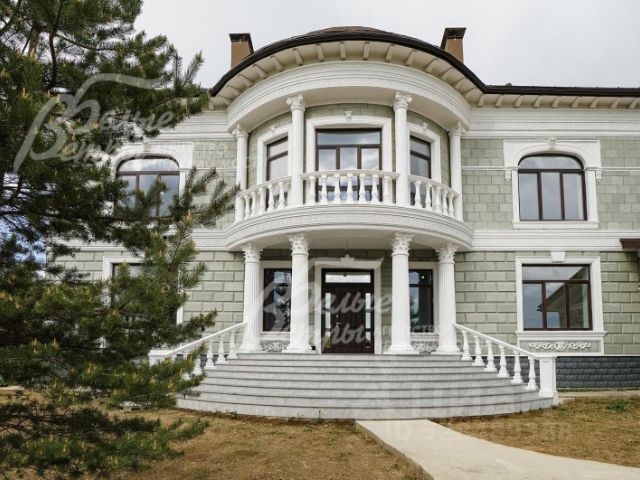Описание внутренней отделки: выполнена классическая отделка дома с многоуровневыми потолками из гипсокартона, лепниной и большим количеством освещения. В отделке использованы натуральные материалы, мрамор, гранит, коллекционная плитка, на втором этаже ковролин, ламинат. Стены в комнатах покрашены, в санузлах плитка. Лестница железобетонная шириной 1,2 м, ступени из мрамора, с коваными патинированными перилами. Все санузлы укомлектованны необходимой сантехникой: круглая ванная-джакузи, душевые кабины, унитазы, биде, раковины. Все коммуникации разведены под ключ, теплые полы везде, где плитка, розетки и выключатели SIMON, радиаторы KERMI. Межкомнатные двери МДФ, светлые с филенками..