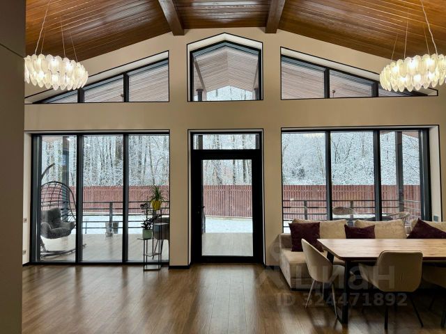 Лот: 9919067. Дом с мебелью 422.5 кв.м на участке 25 cот. Кол-во спален: 4. Кол-во с/у: 4. Поселок "Природный Парк Каменка". Киевское шоссе, 30 км от МКАД. Без комиссии для покупателя. Предлагается к продаже шикарный дом 352 м2 под ключ с панорамными окнами, огромной террасой, отдельно стоящий гараж 68 м2, участок 25 сотки земли. Прихожая- шкаф, домофон. Гардеробная итальянская ALT. Постирочная -стиральная машина, раковина, шкаф для хозяйственных нужд. Немецкая кухня NOLTE со столешницей из натурального американского камня с подсветкой, мойка и кран фирмы BLANKO, остров 3.80 м , вытяжка FALMEC, плита и посудомоечная машина фирмы Gaggenau, встроенный холодильник, встроенная морозильная камера, пароварка, духовка фирмы NEFF, винный шкаф, выход на террасу. Гостиная био камин 3 метра, диван с журнальным столиком, обеденный стол и стулья, зона отдыха с большим диваном фирмы Bo Concept, выход на террасу. Хозяйская спальня со своей гардеробной (шкафы с подсветкой), установлен 5 метровый шкаф в середине столик косметический, большой с/у, хамам, шторы blackout, выход на террасу. Две Детские комнаты со своими с\у, спальня. Кабинет рабочий стол и стул. Все подоконники в доме каменные, установлена вытяжная вентиляция, кондиционеры. Высота потолков в комнатах 3,42 м, в гостиной 4.80 м. Сантехника в доме Jacob Delafon. Коммуникации свет, газ, канализация - центральные. Фасад дома отделан японскими самоочищающимися невыгораемыми вентиляционными панелями и рыжей лиственницей, выполнена подсветка дома и участка. Сам поселок - окруженный лесным массивом, с близко расположенным озером поселок Парк Каменка фактически идеальное место для проживания вдали от суеты и шума. Поселок предлагает и инфраструктурные объекты детскую площадку, магазин, а также все условия для комфортного проживания: газ, электричество, водоснабжение, канализация. 1 этаж: прихожая, кухня, гостинная-столовая с панорамным остеклением и видом на лес, кабинет, мастер-спальня со своей ванной комнатой и гардеробной, гостевая спальня со своим су, две детские спальни, ванная комната, постирочная, котельная. Участок прилесной, с выходом в лес, возможна аренда леса. Сделан дренаж участка, частично выполнен ландшафтный дизайн с туями и кедрами. Вокруг парка раскинулся уникальный природный комплекс общей площадью более 1000 га. На территории поселка сосредоточены самые разнообразные природные ландшафты: черноольховые и лиственно-хвойные леса, луга, ручьевые поймы. Площадь только лесных угодий составляет более 2500 га. В непосредственной близости находятся сразу несколько физкультурно-оздоровительных комплексов, бассейнов, спортивных школ, среди них одна из самых крупных теннисных школ в России — "Русская теннисная академия" в Рогозино и Конно-спортивный комплекс "ИППО" в Ботаково.