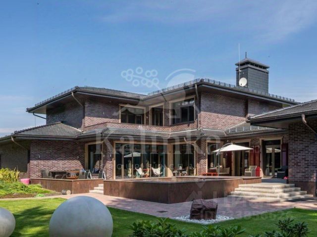 147310 Графский Лес ДОМ ПОСТРОЕН ПО НЕМЕЦКОЙ ТЕХНОЛОГИИ. Построен в 2016 г в стиле американского архитектора Ллойда Райта "органическая архитектура". Планировка 1 этаж: гостиная с камином, кухня, столовая, 2 спальни со своими с/у и гардеробными, малая гостиная, SPA, (включает хамам, 2 душа, сауна с возможностью инфракрасной бани), комната отдыха с с/у, кабинет-гостевая с с/у, постирочная (стиральная и сушильная машины Kupersbush), большая гардеробная для хранения. 2 этаж: две спальни с гардеробными и с/у, игровая, гостиная-кухня с камином, гостевой с/у и стиральной машиной. Основные строительные материалы привезены из Германии. А именно- кирпич несущих стен и перегородок Poroton, облицовочный кирпич Feldhouse, черепица керамическая с покрытием ингибирд коллекция пиано. Стропильная система спроектирована немецким бюро и изготовлена в Германии из дерева с остаточной влажностью 10%. Медная водосточная система с подогревом стоков. Окна Shuko изготовлены в Германии и имеют класс безопасности 2 (полубронированные) с электрическим приводом открывания фрамуг и антивандальными жалюзи. Также и входные двери привезены из Германии. Газовый котел конденсационный Wissman низкотемпературный с выбросом СО2, соответствующим экологическим европейским стандартам. Радиаторы низкотемпературные Yaga и Zender. Теплый пол заполнен пропиленглюколем. Перекрытия выполнены из ж/б плиты филигран с укладкой труб охлаждения потолков. Таким образом, в доме производится охлаждение по системе "теплый пол-холодный потолок" с регулировкой датчикам Rehau. Это наиболее комфортная и безопасная для здоровья человека система по немецким стандартам. Все стены отделаны паропроницаемой штукатуркой с последующей покраской американскими красками или бумажными английскими обоями. На полу широкоформатный ламинат Terhurne, коллекция Avatara (снимающая нагрузку при ходьбе). Двери в алюминиевом коробе высотой 2.1м,2.3м, инд.изготовление. Вокруг дома ливневая канализация с выводом в поселковую сеть. Планировочное решение дома имеет важную особенность. 2-ой этаж может использоваться независимо от 1-го. Т.е., имеет свой отдельный вход, кухню, камин, постирочная,2 террасы. Но,конечно, и внутри как обычно можно проходить по лестнице. Мебель от ведущих фабрик Европы- Anibale Colombo, Morosso, Selva, Bo Concept, кухня Alno (Германия)с электроприводом верхних шкафов и плитой BORA. Подготовка питьевой воды в кухне через пурифайер EcoTronic. Сад вокруг дома спроектирован известным московским бюро с системой дренажа газона. Примыкает к лесу, разделен на несколько зон- геопластика , коллекция рододендронов,пионов, игровая площадка и поляна для игр, лесная часть, регулярный сад и огород, рябиновая аллея. В садовом доме пульт управления автополивом от собственной скважины. Две беседки, качели и т.п. Все дорожки из брусчатки. Все растения из питомников Германии. Новая Москва, не область. Прекрасные выезды на платную дорогу и Киевское шоссе! Звоните сейчас, чтобы узнать подробную информацию и записаться на показ! Экосистема Kalinka недвижимость для счастья.