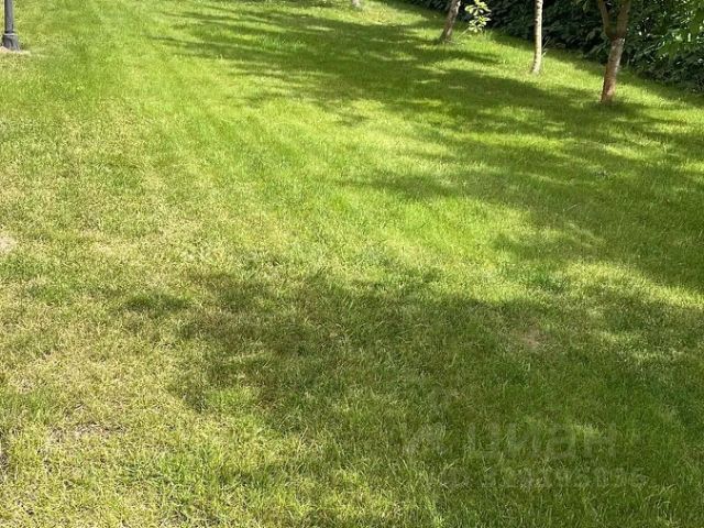 Участок 17 соток, ровный, правильной формы. Проектировался с идеей сохранить природный ландшафт. Растёт более 100 лесных деревьев: ели, сосны, туи, берёзы. Создаётся ощущение собственного мини-парка. Посажен газон, по периметру вдоль улицы и с правой стороны — хвойные посадки.