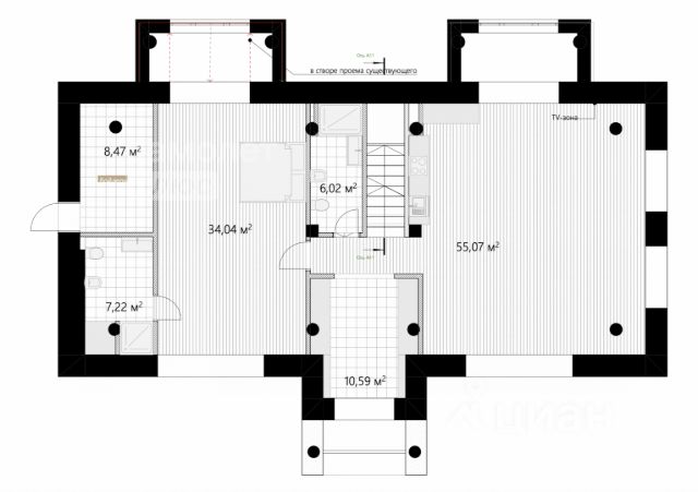 Дополнительные строения: двухэтажный дом-баня 181 кв.м под финишную отделку, построенный в едином стиле с основным домом, с квартирой для персонала. 1-й этаж: холл 5 кв.м, кухня-гостиная 39 кв.м, предбанник 21 кв.м с купелью 2,42,4 м и душевой, сауна 6 кв.м с дровяной печью, отделанной натуральным камнем, комната отдыха 19 кв.м, санузел 5 кв.м, квартира для персонала (жилая комната 15 кв.м, техническое помещение с санузлом 10 кв.м). 2-й этаж: холл 21 кв.м, комната 9 кв.м, спальня 9 кв.м, спальня 11 кв.м, спальня 11 кв.м (стены отделаны деревом), генератор-хозблок 10 кв.м.