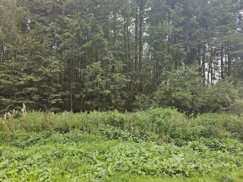 Благоустройство участка: на участке сохранены взрослые лесные деревья (липы, березы, осины, хвойные деревья), на террасе установлены качели и гриль.
