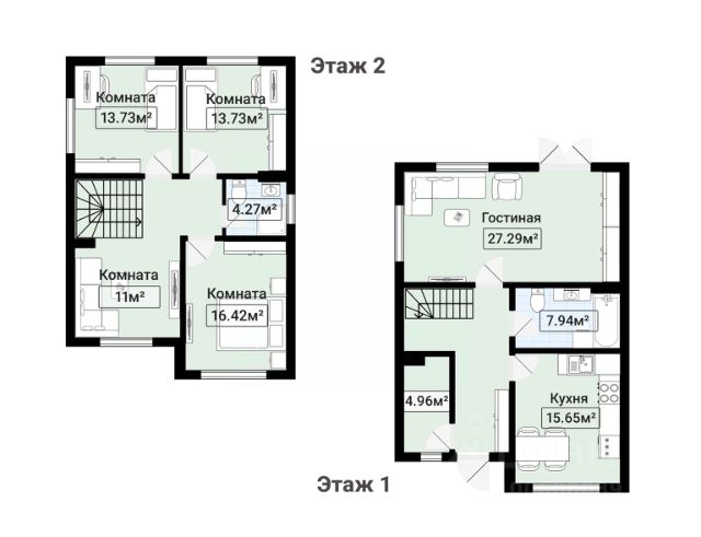 - Планировка: 5 просторных комнат (15,65 м², 29 м², 16,42 м², 11 м², 13,73 м²) + кухня 27,29 м².