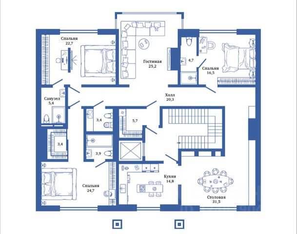 Номер лота: 1870224 Роскошная РЕЗИДЕНЦИЯ с отделкой whitebox В САМОМ ЗАПОВЕДНОИМ И ЖИВОПИСНОМ ПОСЕЛКЕ "Серебряный Бор" на побережье Москва-реки. Планировочное решение. Цоколь: кинотеатр, спортзал, винный погреб с комнатой для дегустации, гардеробные, с/у, подсобные и кладовые, постирочная, блок для персонала, тех. помещения 1 этаж: холл, большая гостиная с выходом на зимний сад, столовая, кухня, техническая кухня, кабинет, бильярдная, 2 с/у, 2 гардеробные, 2 лифта 2 этаж: мастер-блок (спальня, 2 ванные комнаты, 2 гардеробные), 2 спальни, каждая - с ванной и гардеробной, 2 детские спальни с общей ванной и гардеробной. Мансарда: спальня с ванной и гардеробной, кабинет/библиотека, игровая, с/у. На территории участка 4 клубных дома и административный корпус, в котором размещена управляющая компания, инженерные системы, круглосуточная охрана и квартира для обслуживающего персонала. Долевая собственность земельного участка, относящаяся к особняку составляет 0,47 га.