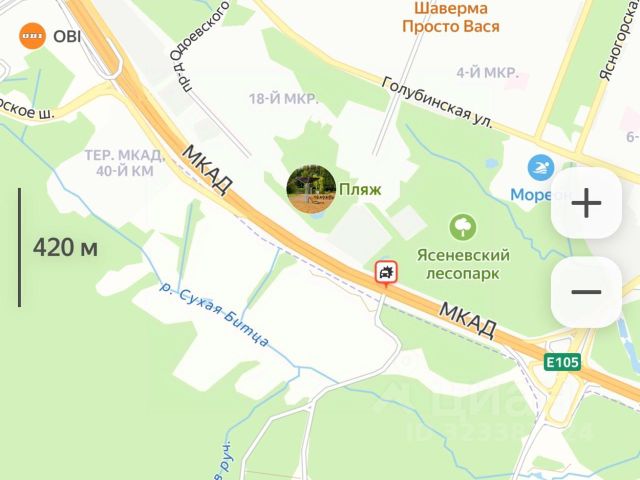 Ниже ЦИАН описывает, что действующая Школа находится на расстоянии 1,4 км и пешком до неё 19 минут.
