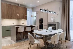 Внутреннее пространство каждого коттеджа продумано до мелочей и максимально функционально. Высота потолков варьируется от 3 метров на первом этаже до 3.5 метров на втором, что буквально наполняет дома воздухом и светом. На первом этаже расположены кухня-гостиная-столовая с камином и выходом на террасу, где можно уютно отдохнуть всей семьей и с друзьями, для гостей предусмотрена отдельная спальня, которую можно использовать в качестве кабинета или комнаты для персонала. На втором этаже расположены спальные комнаты. В зависимости от выбранного проекта к дому прилагается навес на 2 автомобиля.