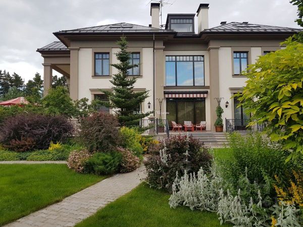 Дом сочетает элегантность традиционного стиля и высокое качество строительных материалов. Стены возведены из кирпича, цоколь, терраса, крыльцо, дорожки выполнены из травертина, крыша- фальцевая кровля, все двери и стеклопакеты в доме- из натурального дерева.