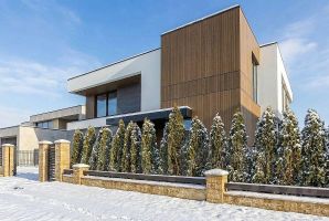 Дом из газосиликатного блока Bonolit, снаружи отделан термопанелями с клинкером Парадис (есть возможность исполнения в клинкере серого цвета), кровля металлочерепица производства Grandline, установлены пластиковые окна Rehau, установлено внешнее освещение дома. Гарантия от строительной компании на все узлы дома — 1 год!
