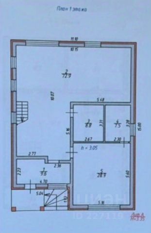 Высота потолков: 3,05 м (1-й и 2-й этажи)