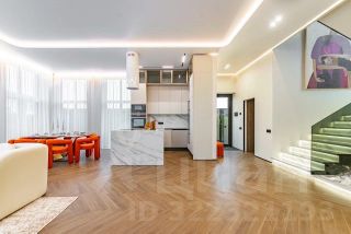 Большое количество вариаций освещения : Парящий контурный свет , потолочный точечный, люстры и бра создают уют в любое время суток и времени года.