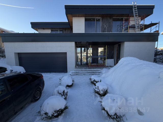 В доме: 5 спален (одна из них - на первом этаже), гостиная с камином, большая кухня-столовая с эркером, теплая веранда (зимний сад) с кухонной зоной и выходом на террасу, террасы на первом и втором этажах, мансардный этаж свободной планировки под чистовую отделку, постирочная, котельная и кладовые.