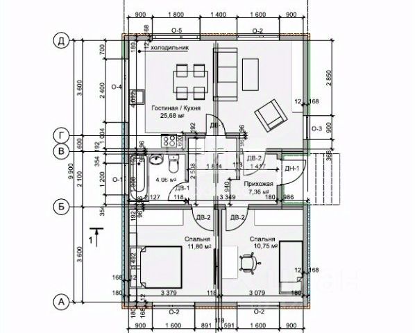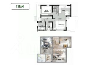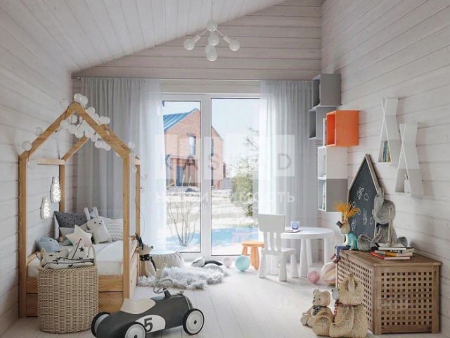 2-й этаж. Второй этаж дома представляет собой мансарду и включает в себя: спальня 1, спальня 2, с/у, холл 2-го этажа/детская игровая зона.