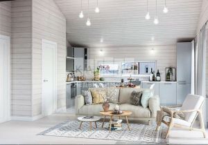 Ключевым интерьерным решением при строительстве дома является использование современных дизайнерских решений и инженерных систем в пространстве деревянного рубленого шале, стиль интерьера можно описать как Smart Minimalism. Бревна не подвергались внутри никакой химической обработке, внутри дома сохранен запах натурального дерева. Использованы только натуральные немецкие масла G Nature для обработки деревянных поверхностей (оконные обсады, подоконники, порталы и тд). В отделке СУ использован натуральный мрамор и гранит, что технологически очень сложно при строительстве деревянных домов и потребовало кастомных инженерных решений при монтаже. Все столярные изделия выполнены на заказ включая двери и порталы. В отделке были использованы краски только таких производителей как: Little Green, Benjamin Moor. Фермы гостиной являющиеся опорами крыши второго света выполнены из дуба технологией ручной рубки (не имеет аналогов в РФ). Дровяной камин в гостиной представляет собой арт объект и реализован в стиле пост-конструктивизм, общий стиль поддерживает современная живопись известных художников.