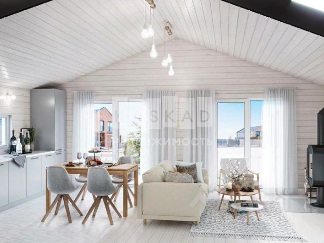 Дом выполнен в стиле гибридный канадский деревянный дом Шале.