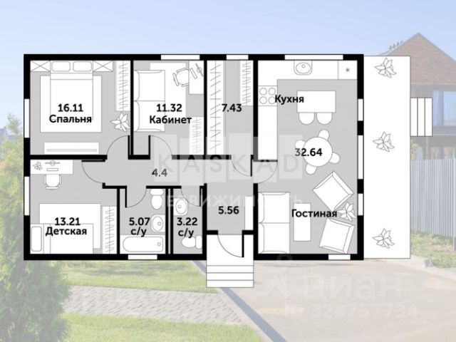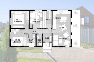 Дом состоит из двух строений разделенных стеклянным коридором, в одной части дома "малой" расположены все технические помещения включая кухню, в "большом доме" расположены все жилые зоны для максимальной комфортности проживания.