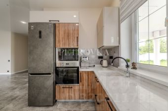 Лот: 9917720. ЭКСКЛЮЗИВ NF GROUP. Дом с мебелью 414.7 кв.м на участке 12.2 cот. Кол-во спален: 5. Кол-во с/у: 4. Поселок "Калужские усадьбы". Калужское шоссе, 9 км от МКАД. Без комиссии для покупателя. Новый дом в стиле знаменитого американского архитектора Фрэнка Ллойда Райта, в живописном месте коттеджном поселке Калужские Усадьбы. Современная архитектура, большие площади остекления, высокие потолки 3.6 м., продуманная планировка. Конструктив: фундамент - монолит/плита, стены кирпич, снаружи отделка фасада штукатурка, цоколь - декоративный камень, кровля мягкая черепица Certain Teed LandMark (USA). Теплые полы по всей площади 1-го этажа и в санузлах и гардеробной 2-го этажа. В котельной установлен газовый и электрический котлы, а также система водоочистки. стеклопакеты Rehau, вся инженерная сантехника качественная Германия (TECE, Hansgrohe, Kludi), осветительные приборы Flos (Италия). Коммуникации центральные: магистральный газ, эл-во 25 кВт (3 фазы), водоснабжение, канализация. Отдельно установлен профессиональный генератор. 1 этаж: кухня-гостиная с выходом на террасу, спальня, два с/у, гардеробная, постирочная комната, прихожая, большой холл, гараж на 2 авто, котельная; 2 этаж: мастер-блок (спальня, гардеробная, ванная комната, выход на балкон), 2 спальни и с/у, кабинет (спальня), спортивный зал 102 кв.м. Совмещенный с домом просторный гараж на 2 авто (но можно поставить и 4), с хозяйственной зоной, включая душевую кабину для собаки. Установлена кухня с островом, столешницы выполнены из искусственного камня, бытовая техника Bosch (Германия) - холодильник, индукционная панель, посудомоечная машина, морозильник, духовка. Участок 12,2 сотки правильной формы с удобной въездной группой. Выполнен ландшафтный дизайн, высажены деревья, кустарники, сделаны дорожки, установлена система автоматического полива. Охраняемая и огороженная территория посёлка, с собственным КПП и интеллектуальной системой доступа,у величенные проездные и пешеходные зоны, собственная прогулочная зона с альпийской горкой и живыми рыбками, в домах проектом предусмотрена установка лифтов, проведены все центральные коммуникации,развитая инфраструктура, высокая транспортная обеспеченность и доступность (метро Столбово).Поблизости расположены торгово-развлекательные центры ИКЕА, "Мега" и "Ашан". Рядом в поселке Воскресенское находятся все необходимые объекты инфраструктуры школа, спортивно-развлекательный центр, центр диагностики, дом отдыха с пляжем у реки Десны, продуктовые магазины, банки, салоны красоты и рестораны.