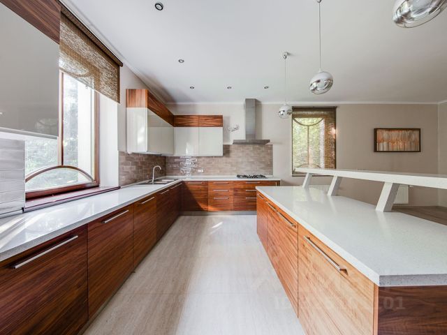 Функциональная планировка включает 7 спален, гостиную, кухню, столовую с выходом на террасу, кабинет, бильярдную, бар, тренажерный зал и сауну. На участке, где растут взрослые хвойные деревья, реализован ландшафтный дизайн: выполнен дренаж, засеян газон и выложены дорожки. Для отдыха с близкими предусмотрена беседка с камином и зоной барбекю. Удобно размещенный гараж на 2 машины дополняет загородный дом.