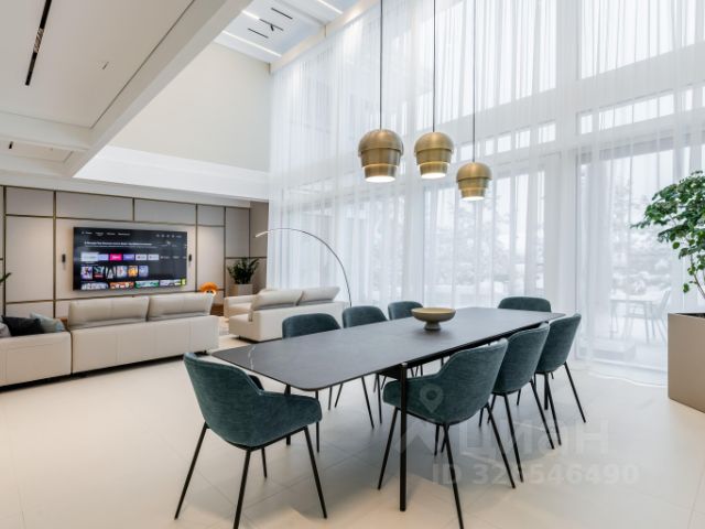 В главном доме есть столовая, кладовая/винная комната. Кухня полностью оборудована встроенной мебелью и техникой из Германии и Италии. Дополнительно предусмотрен блок кабинета с санузлом, гардеробной/оружейной комнатой и выходом на террасу. Гостевой блок оснащен санузлом, гардеробной. Есть отдельная терраса. Главная спальня с изящным камином включает санузел, гардеробную и выход на собственную террасу.