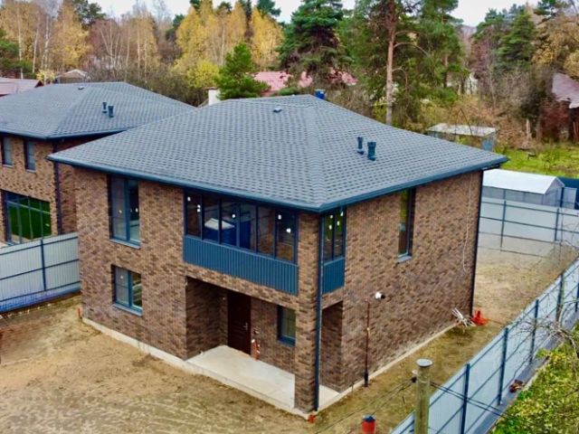 Дом из пеноблоков с утеплителем, облицовка дома блоками под колотый камень, фундамент монолитно ленточный глубиной 1,5 м. марка бетона 460, этажные перекрытия железобетонная плита, подвал отсутствует, крыша метало черепица с каменной посыпкой, септик переливной, в доме есть лифт калитка с электро замком и видео домофоном на два этажа.