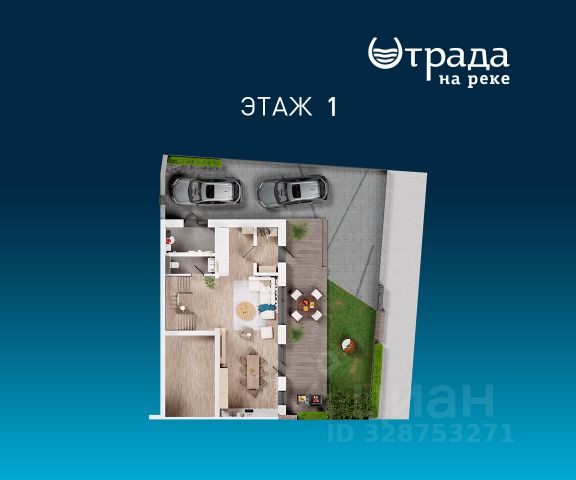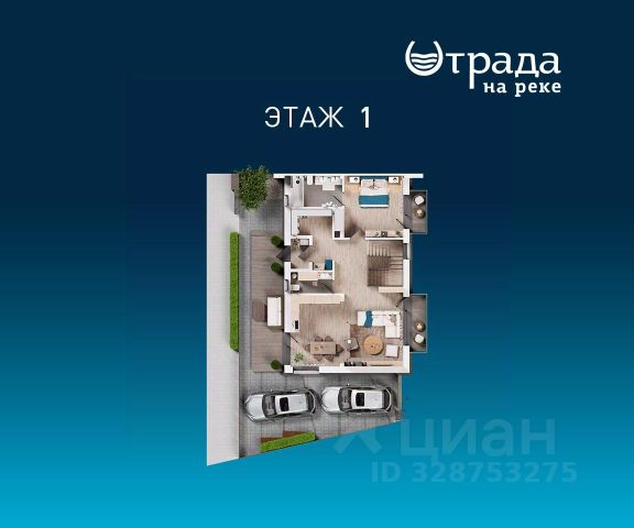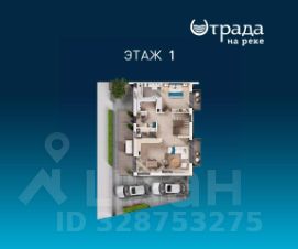 1-й этаж: холл, гардеробная, с/у, двусветная гостиная с дровяным камином и выходом на террасу, столовая, кухня, кабинет, лифт, гараж на 2м/м