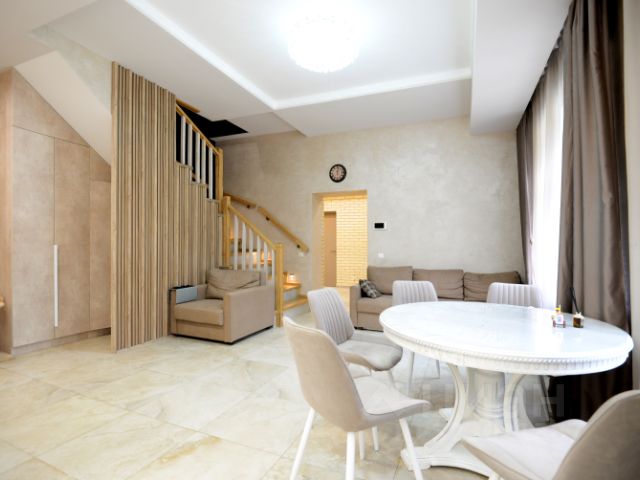 Продается дом площадью 313 кв.м. на участке 11,02 соток в полностью готовом посёлке Стольный, 32 км от МКАД по Калужскому шоссе, на территории Новой Москвы. 1 этаж: холл, гардеробная, просторная гостиная со вторым светом, кухня столовая, терраса 15 м, кабинет/спальня, гостевой с/у, мастер-спальня, котельная. 2 этаж: хозяйская спальня с балконом и видом на хвойный лес со своей гардеробной комнатой, 2 детские спальни, с/у, второй зал. На дом разработаны: АПР (архитектурно-планировочное решение), проект инженерных систем, КД. Высота потолков метров от 3-х до 5-ти метров. Стены брус камерной сушки 195х145, материал хвойные породы. Балки перекрытия камерной сушки, материал хвойные породы. Кровля Металлическая черепица Grand Line классик Satin-RR 32-0,5 мм. Окна ПВХ 70 Rehau белые Grazio. Фундамент: ж/б сваи 150х150 мм. В поселке пруд, специально для жильцов построена набережная, спортивная и детская площадки. Внутренние автомобильные дороги с качественным покрытием в темное время суток освещаются. Комфорт проживания обеспечивает собственная служба эксплуатации, которая поддерживает порядок в зонах общего пользования, организует уборку снега и вывоз мусора, отвечает за бесперебойную работу всех инженерных коммуникаций. Поселок по периметру обнесен забором, на въезде установлен контрольно-пропускной пункт. Служба охраны дежурит круглосуточно, чтобы покой жителей ничего не нарушало. Для удобства жителей на въезде в поселок имеется гостевая парковка. Рядом находятся ясли-сад KidsPlanet с изучением английского языка для детей 1,5-7 лет. В поселке работает магазин с большим ассортиментом повседневных товаров. Недалеко от поселка расположены конное хозяйство Элитар, действующая церковь Никольская с воскресной школой, санаторий "Курорт Михайловское", Экзотик-Парк для отдыха с детьми. За 10 минут на автомобиле можно добраться до города Троицк, чтобы воспользоваться любым из объектов его высокоразвитой инфраструктуры. Здесь работают супермаркеты и торговые центры, образовательные и медицинские учреждения, отделения банков, развлекательные заведения. Поселок расположен недалеко от деревни Никольское, рядом с чистой рекой и живописным озером. Для тех, кому надоела вечная суета города, кому нужна размеренная спокойная жизнь за городом. Место для души!