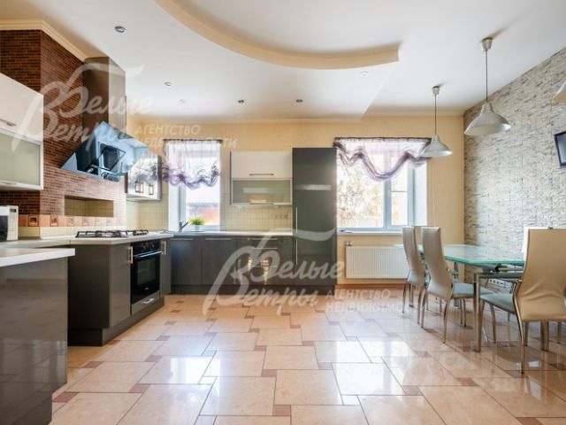 Мебель, оборудование: все комнаты укомплектованы роскошной итальянской мебелью в классическом стиле или барокко. Установлен кухонный гарнитур со столешницей из натурального гранита со встроенной газовой плитой, встроенная духовка и микроволновка BOSH, холодильник LIEBHERR, полубарный остров со столом и стульями 4 шт., обеденная группа из массива дерева. Большое арочное зеркало в холле, телевизоры, диваны, изящные журнальные столики и консоли и комоды. В двусветной гостиной многоярусная хрустальная люстра, окна украшены шторами с ламбрекенами, на полу ковер..