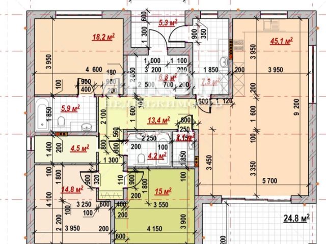 В доме 3 изолированных комнаты (16,9 + 16,5 + 12,9 м2), две из них со своими гардеробными,