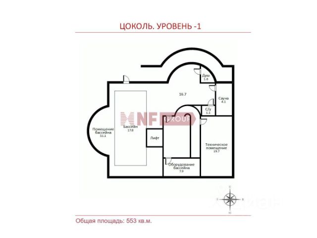 Цоколь: бассейн, душ, сауна, с/у, тех.помещения;
