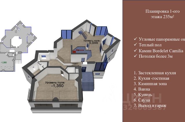11. Отдельно стоящий на берегу пруда дом-баня, 2 этажа.