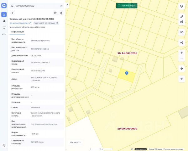 Продаю земельный участок, площадь 735 +/- 9, кадастровый номер 50:14:0020206:1682(Торги -127 ФЗ).