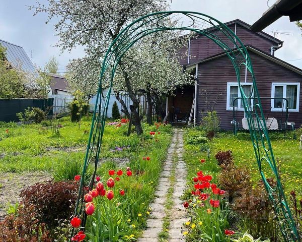 Ухоженный сад, в котором стоит щитовой домик размером 40 кв.м. (может быть оборудован в отдельное жилое помещение, в нём 3 комнаты). Пруд с альпийской горкой и водопадом, недалеко от него мангальная площадка с коваными лавками и столом.
