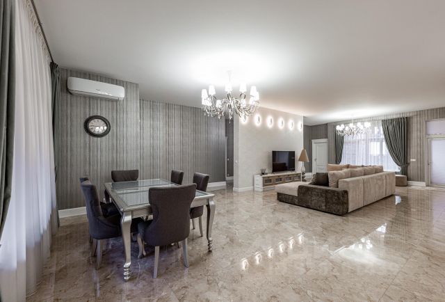 Дом 686 кв.м в неоклассическом стиле на участке 23 сотки с эксклюзивным ландшафтным дизайном в 17 км от МКАД по Дмитровскому шоссе. В охраняемом коттеджном поселке Аврора, расположенном прямо на берегу канала им. Москвы, есть собственный пляж, яхт-клуб и прогулочная набережная.