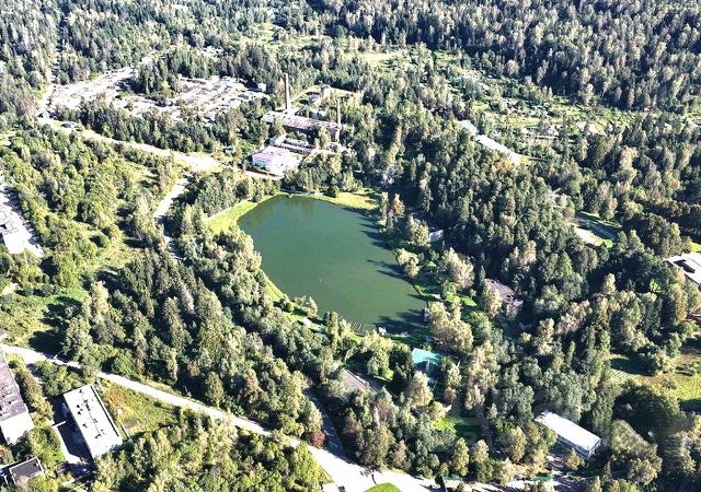Поселок с одной стороны граничит с деревней, с другой с лесом.