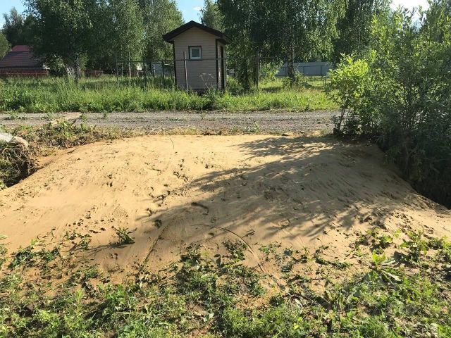 Участок отсыпан песком, сверху плодородный грунт. Участок огорожен, две внешние стороны на ленточном фундаменте 300х600, профиль 80х80, наполнитель -доска. Третья сторона, (профиль 60х60, наполнитель профлист).