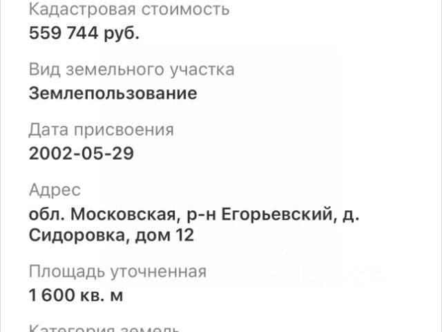 • ✓ В базе Циан 2 земельных участков в деревне Сидоровка Московской области