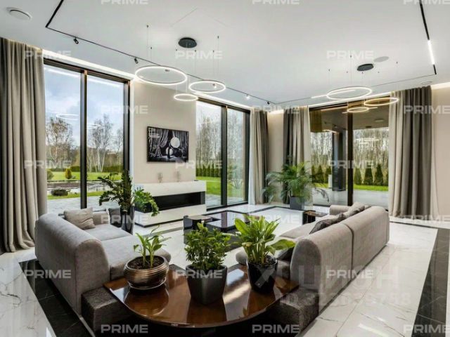 В отделке используются только премиальные материалы: мрамор (отделка камина, раковина в гостевом с/у, хаммам, прихожая, мужская мастер-ванная), кварцит (женская мастер-ванная, остров на кухне), инженерная доска из дуба (на полу), тик (потолок бассейна), кедр и абаш (сауна).