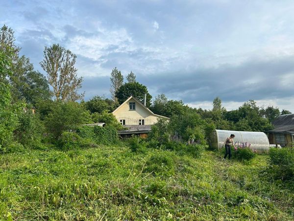 Участок 15 соток, есть гараж, двухэтажный дом ~ 100 кв.м.. Есть газ, свет, колодец, старая баня. В доме есть печь. Жить в доме можно, но небольшой ремонт требуется. В пешей доступности магазин "Пятерочка".