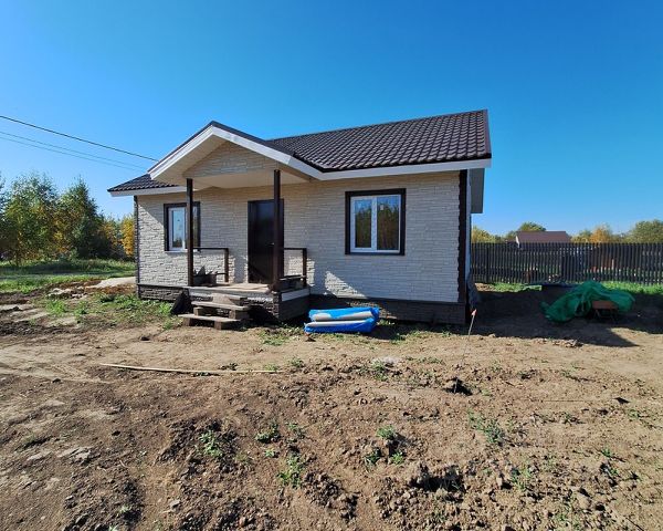 Дом одноэтажный из бруса с облицовкой сайдингом: входное помещение коридор 6 метров, большая комната 24 метра, кухня 9,3 метров, столовая 10 метров, котельная 6,5 метров, есть помещение предназначенное по проекту для душевой зоны ванны и туалета - 7,7 метров.