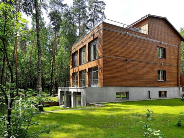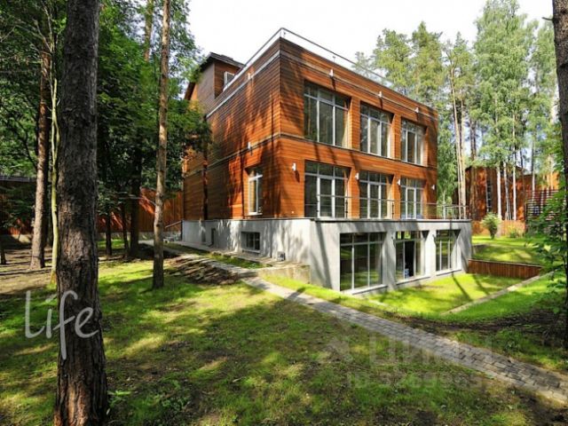 В коттеджном поселке "Рассвет", всего в 5 км от МКАД по Рублево-Успенскому шоссе, находится дом площадью 1063 кв.м. на участке в 15 соток с ландшафтным дизайном.