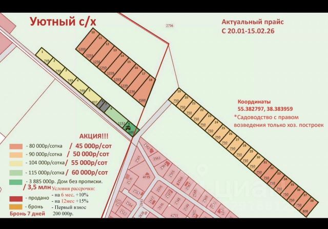 1. Для постоянного проживания или отдыха, с правом строительства жилого дома и регистрации в нем (категория земель земли сельскохозяйственного назначения, вид разрешенного использования для дачного строительства), кадастровый номер 50:29:0030401:261