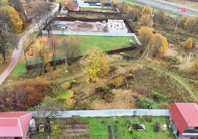 Участок, 10,5 сотки, электричество проведено (по границе участка установлен эл. щит) имеется бытовка (не использовалась). Участок в аренде, после постройки дома - переводится в собственность. Круглогодично охраняемая огороженная территория, доброжелательные соседи. Живописные места, лес, рыбалка.