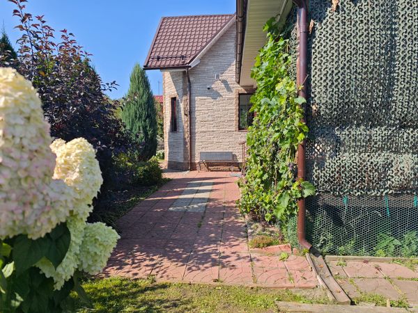 Рядом с домом расположен гараж с автоматическими воротами на два автомобиля, помещение под баню (заведены коммуникации), хозяйственное помещение с подвалом.