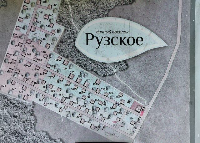 На общем фото выделила участок цветом, но фото старое, на текущий момент на территории много деревьев и застройка поселка практически закончена.