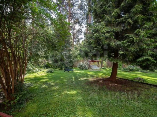 На участке высажен газон и вековые сосны. Асфальтированное парковочное место на две машины (можно сделать навес). Баня на дровах со своей террасой, мангальная зона с беседкой и тёплая бытовка.